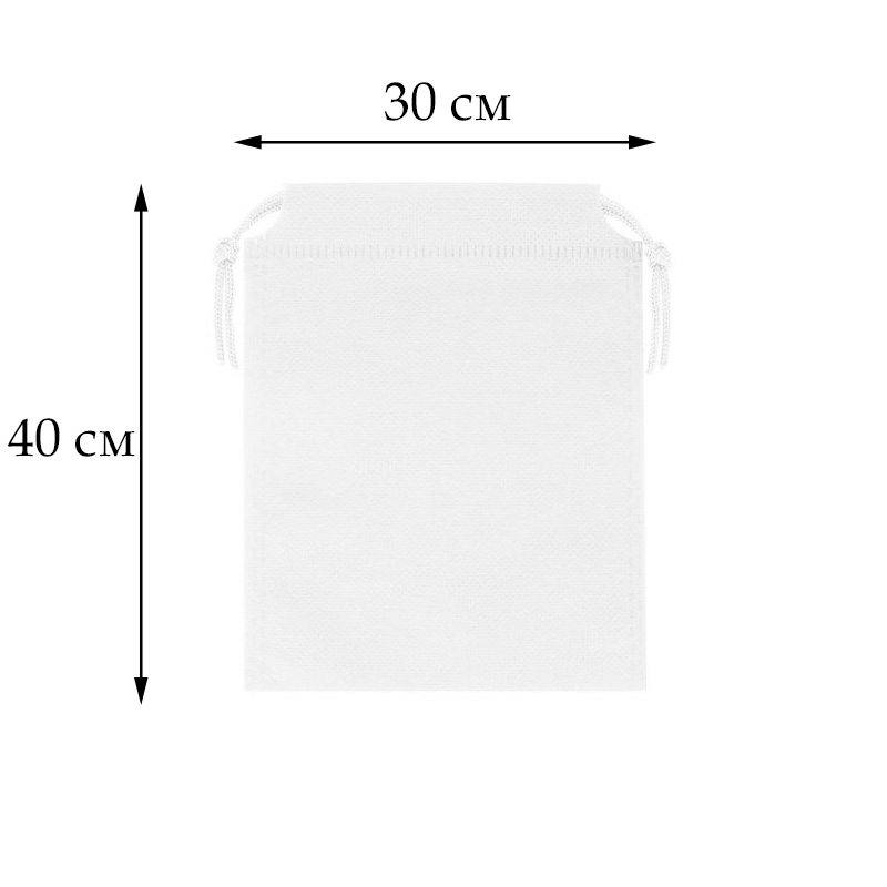 Мешочек из спанбонда, размеры 40х30см, со шнурками, подходит для многоразового использования.