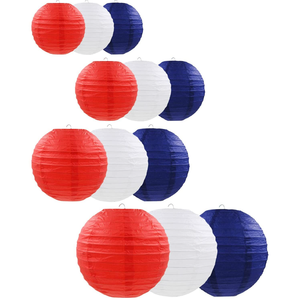 Набор подвесные фонарики 12 шт, белый+красный+т.синий