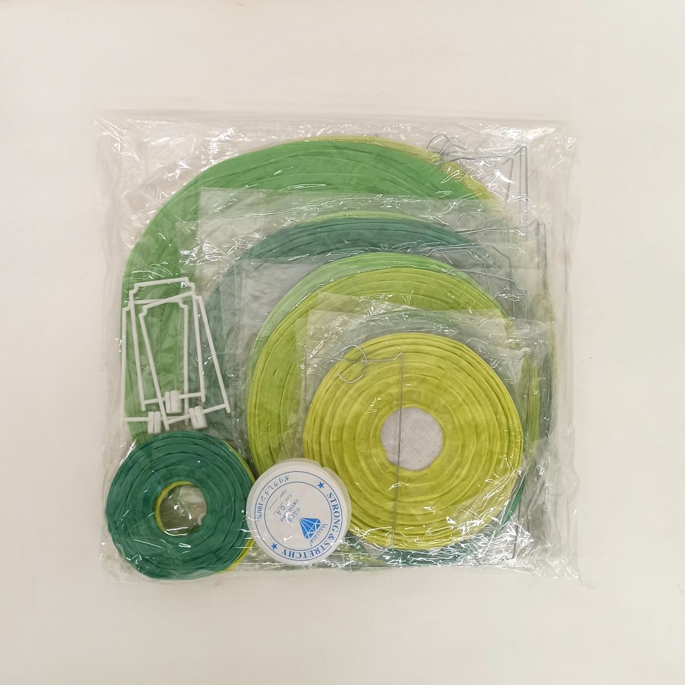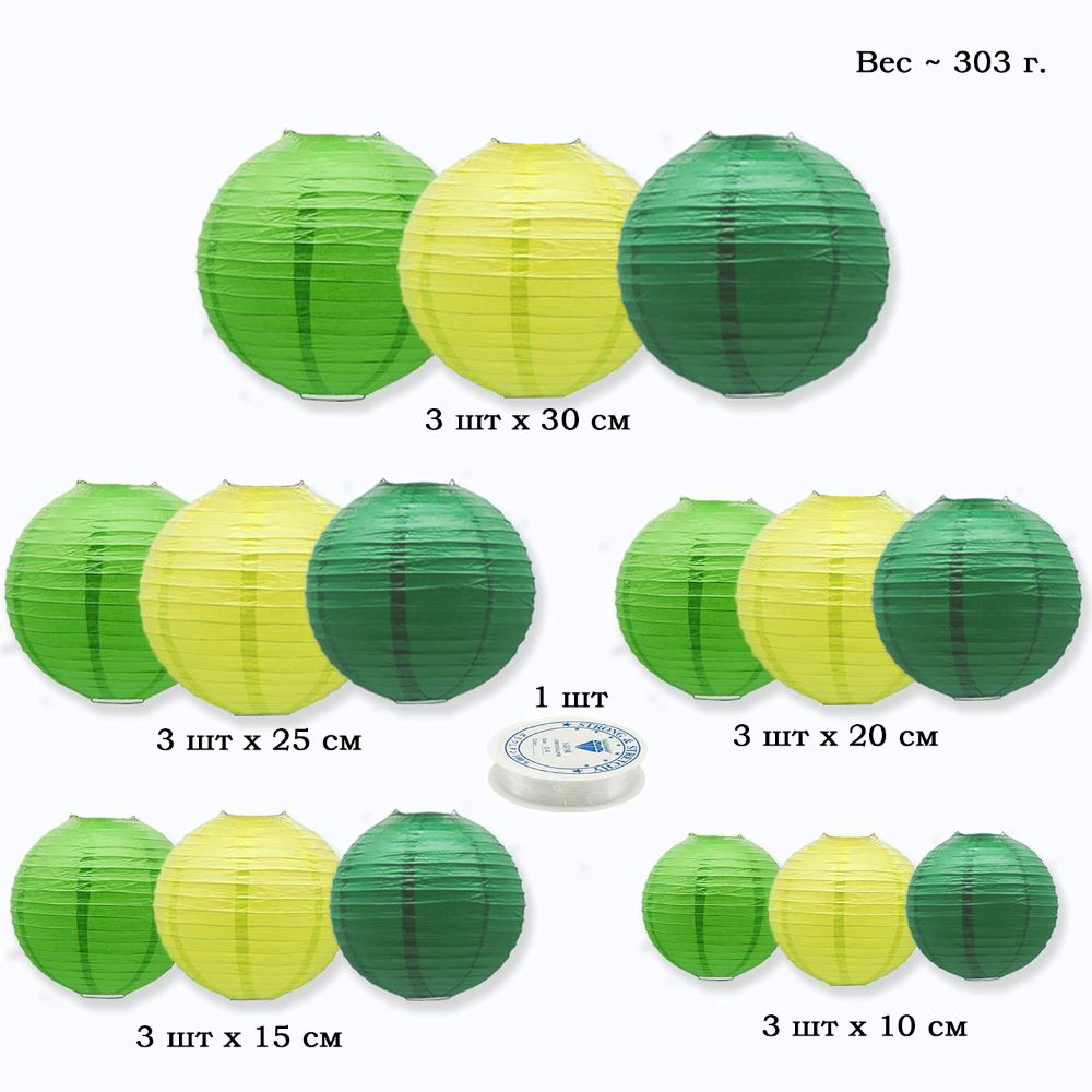 Набор подвесные фонарики 15 шт + леска, салатовый+зеленый+т.зеленый