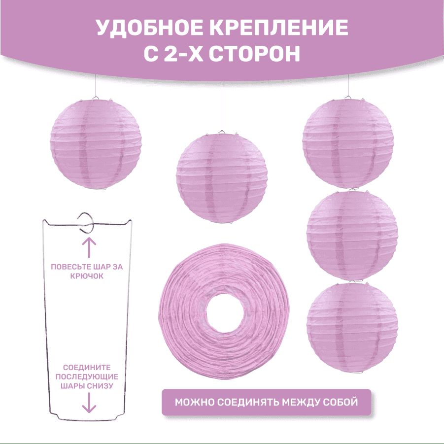 Комплект подвесные фонарики 30 см х 8 шт, светло-сиреневый