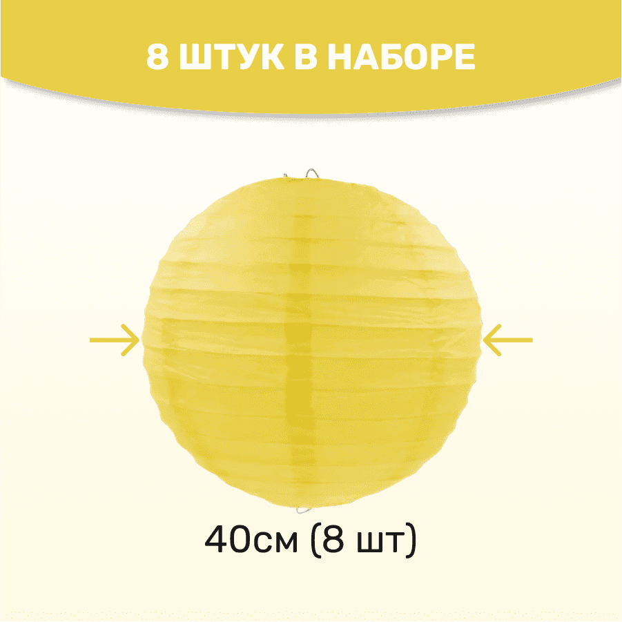Комплект подвесные фонарики 40 см х 8 шт, желтый