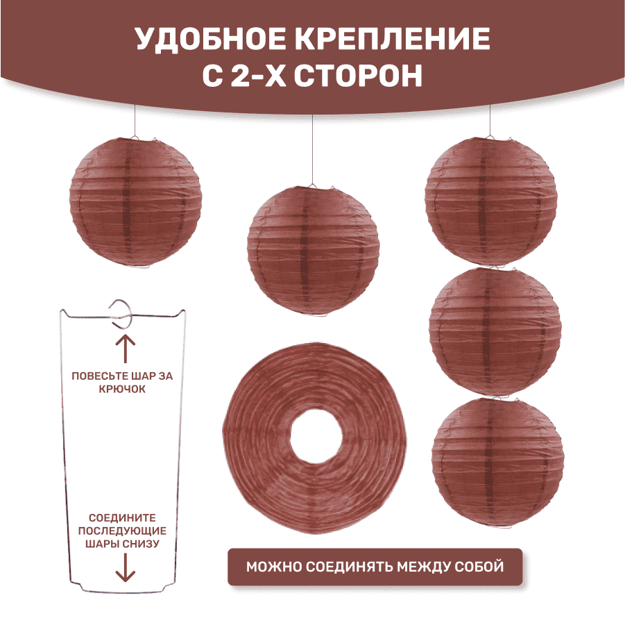 Комплект подвесные фонарики 40 см х 8 шт, коричневый