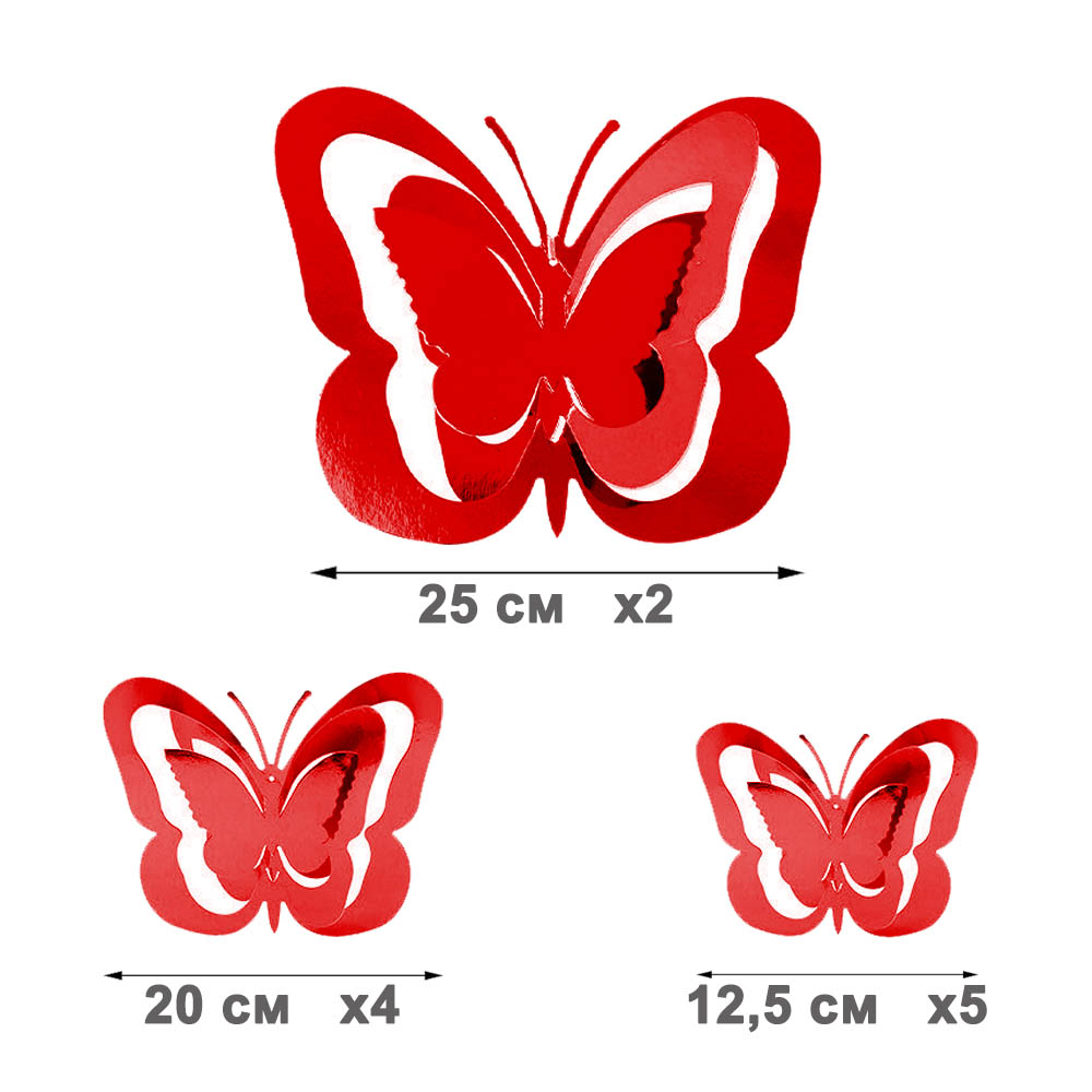 Набор подвесок Бабочки 3D 11 шт красный
