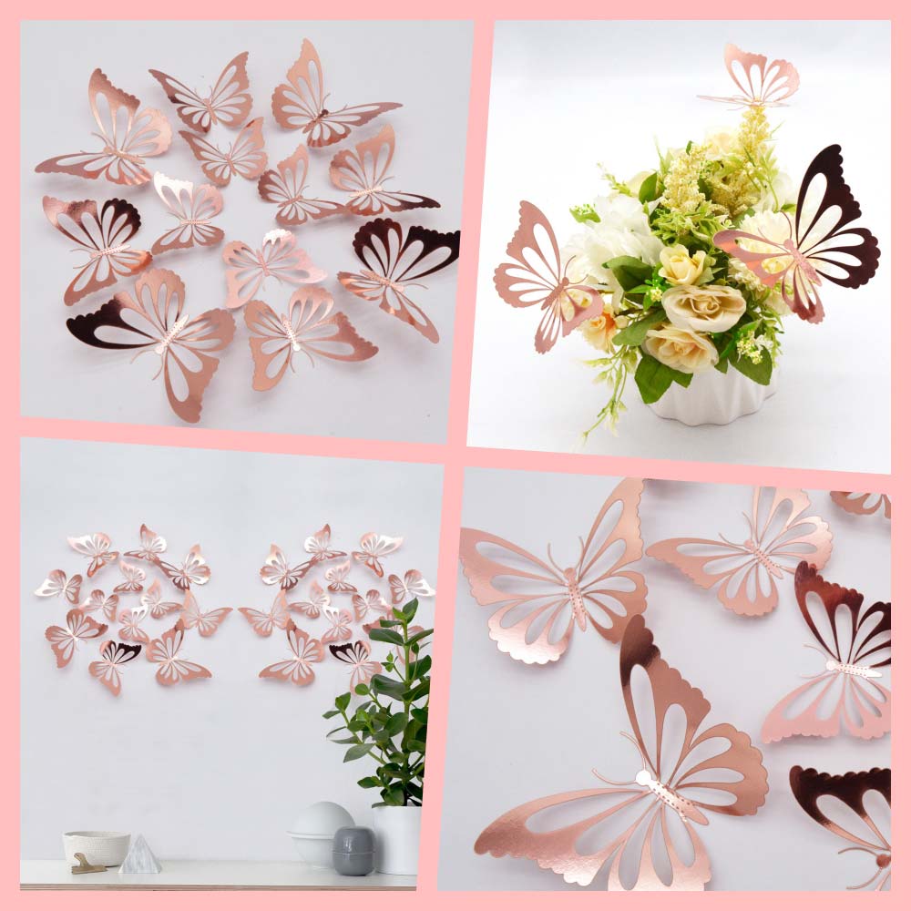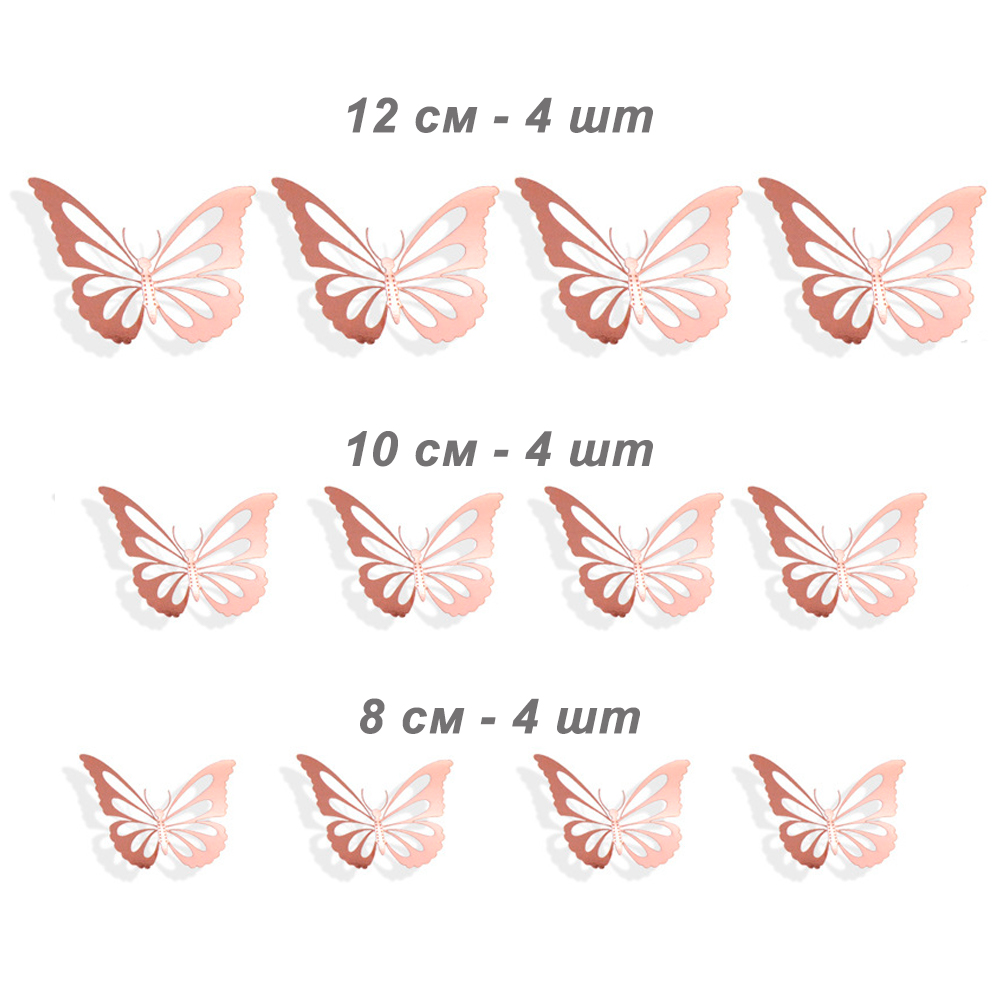 Наклейки Бабочки № 10 бумага металлик 12 шт розовое золото