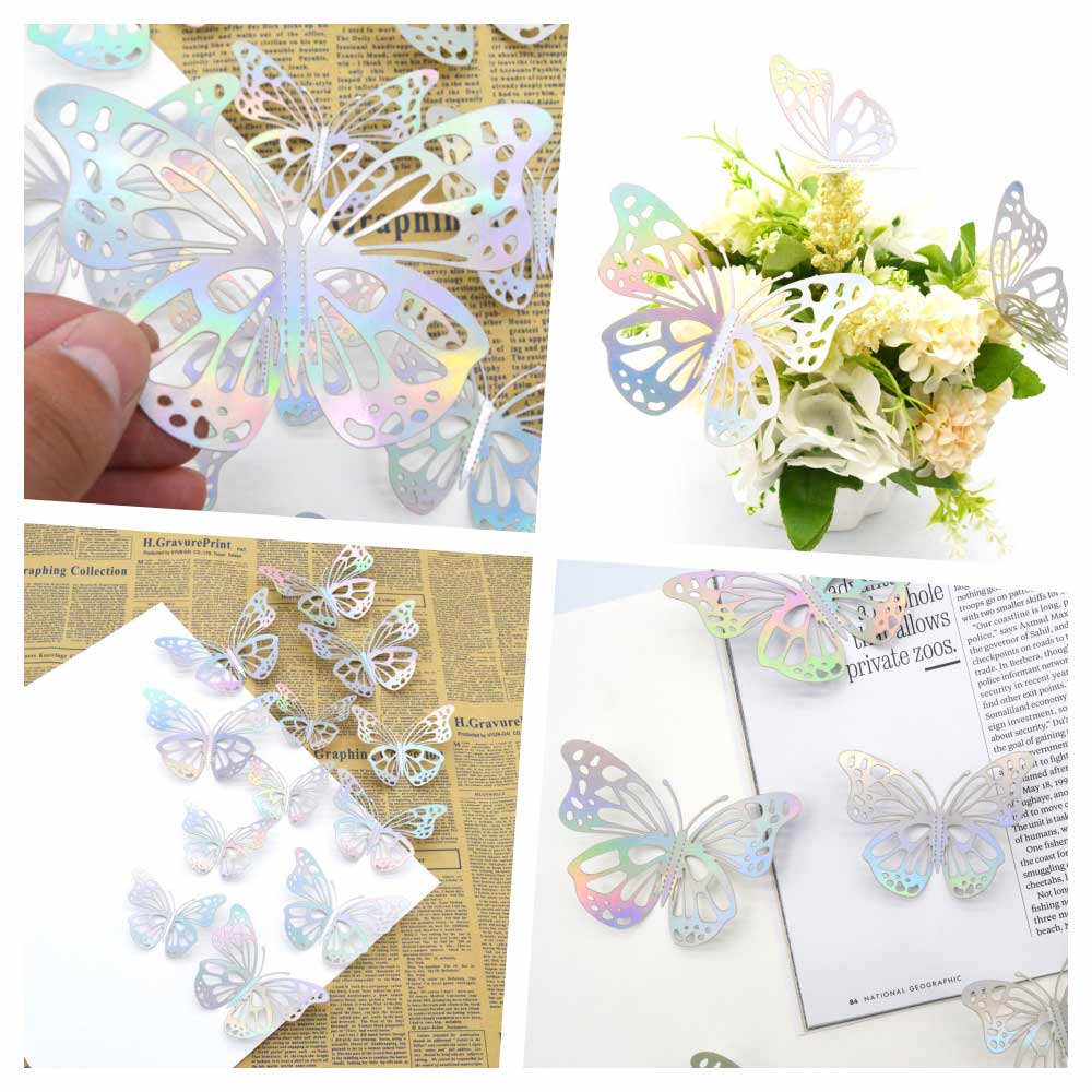 Наклейки Бабочки № 11 бумага металлик 12 шт серебро