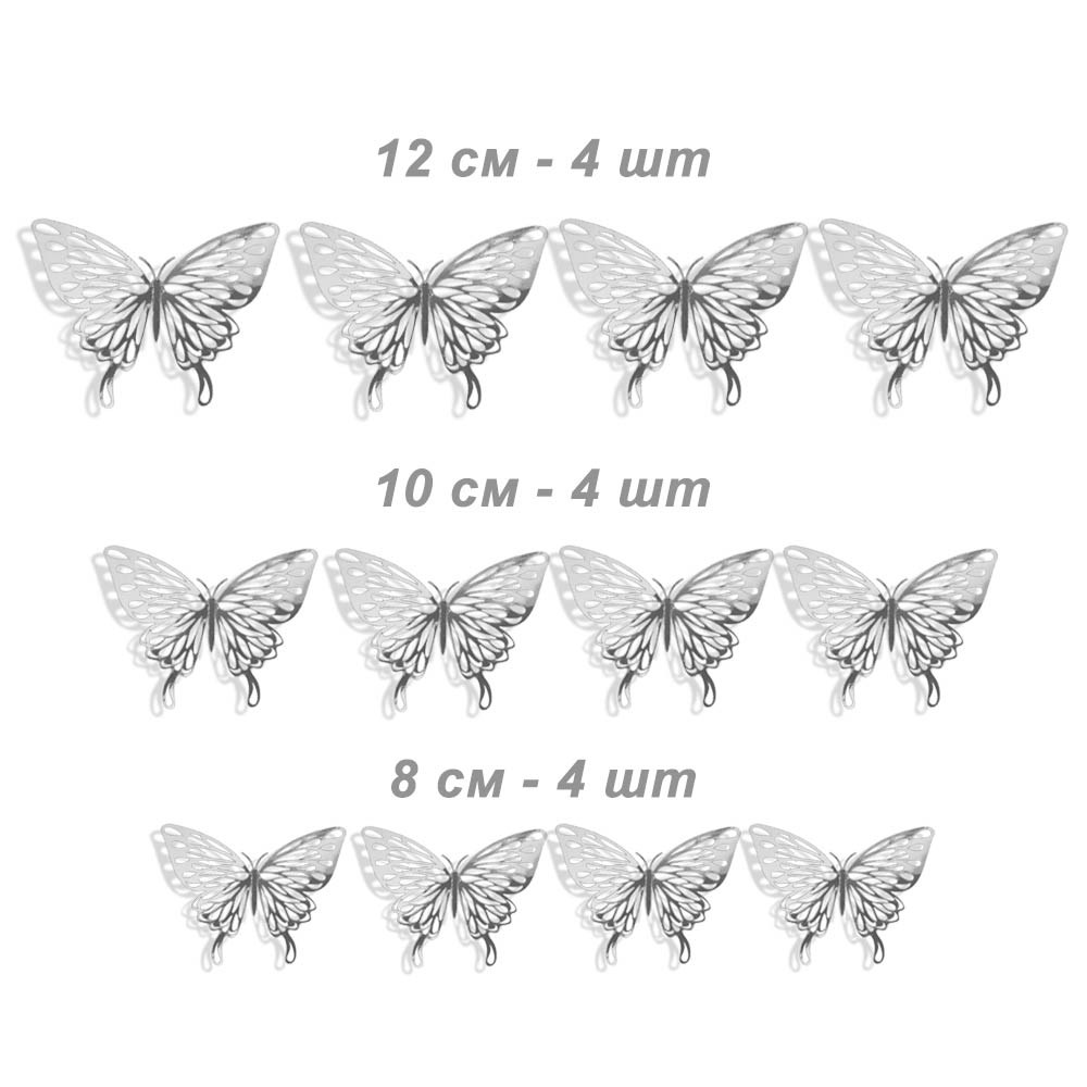 Наклейки Бабочки № 12 бумага металлик 12 шт серебро