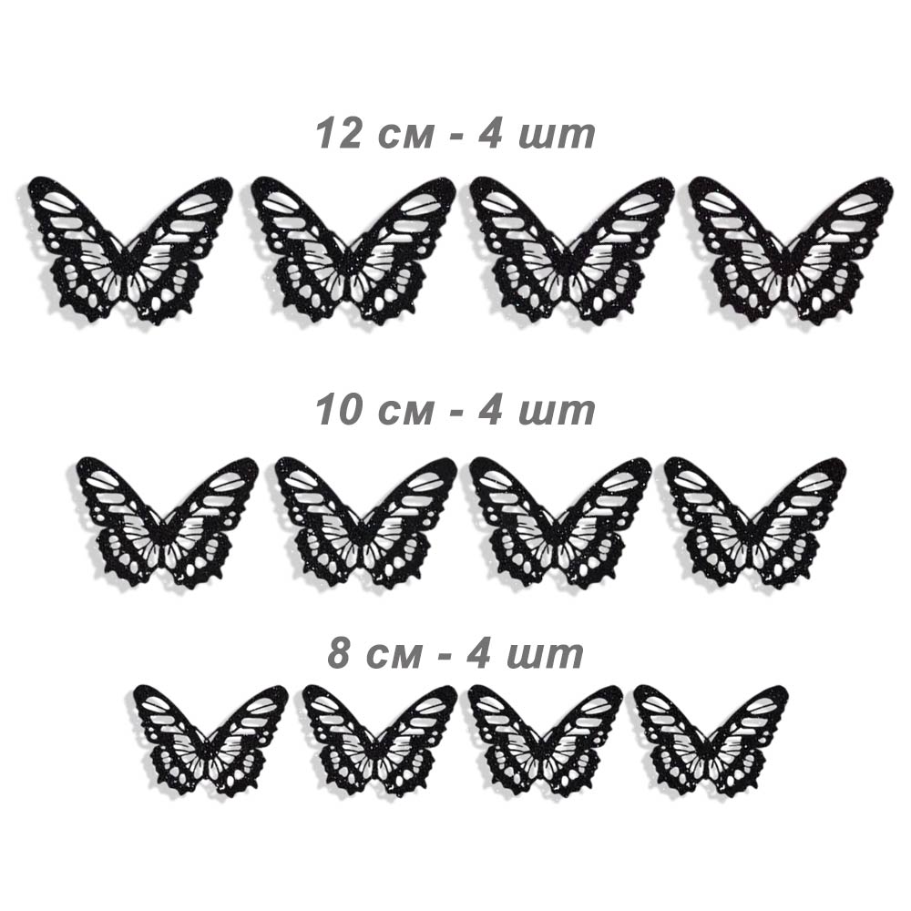 Наклейки Бабочки № 13 бумага перламутровая 12 шт черный