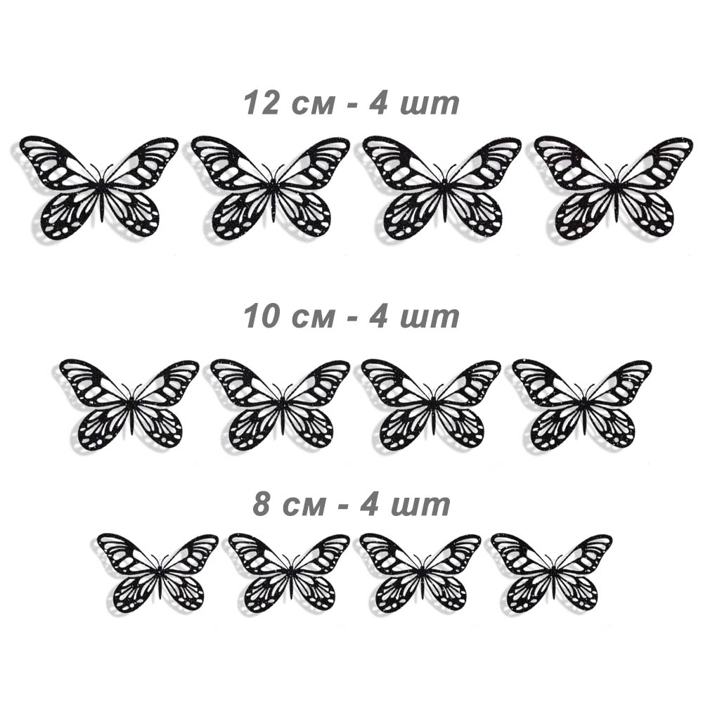 Наклейки Бабочки № 14 бумага перламутровая 12 шт черный
