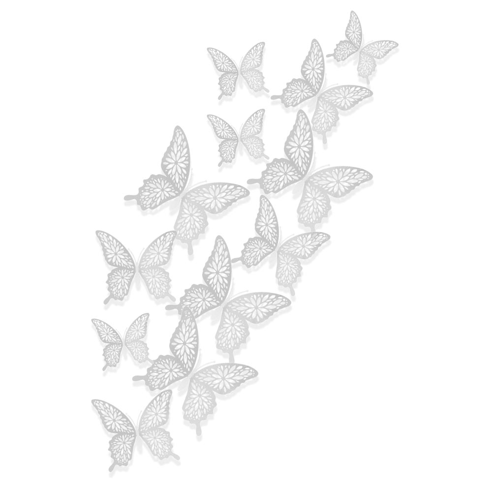 Наклейки Бабочки № 15 бумага металлик 12 шт серебро