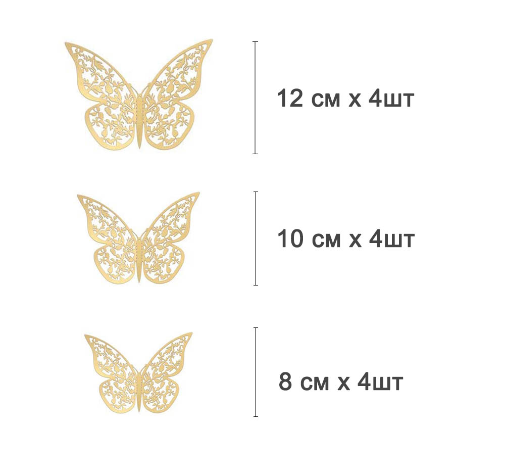Наклейки Бабочки №3 12 шт бумага золото