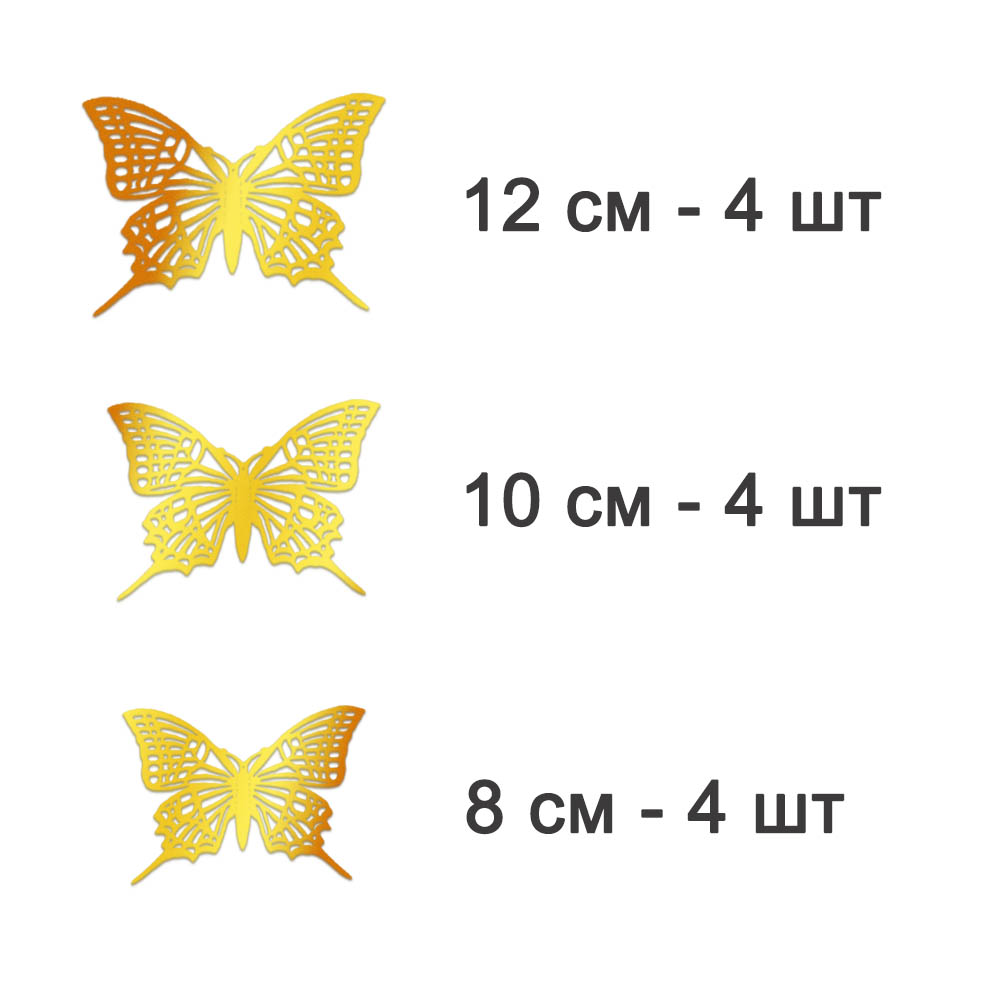 Наклейки Бабочки №4 12 шт бумага золото