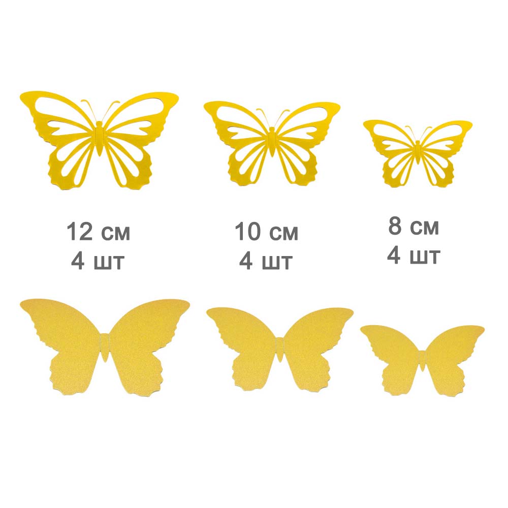 Наклейки Бабочки двойные перламутровые бумажные № 6 12 шт золото