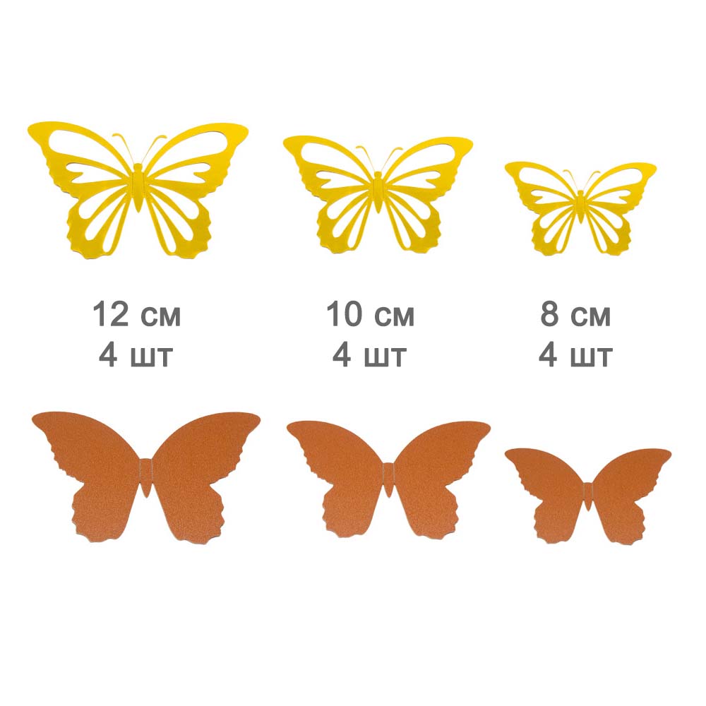 Наклейки Бабочки двойные перламутровые бумажные № 6 12 шт золото+бронза