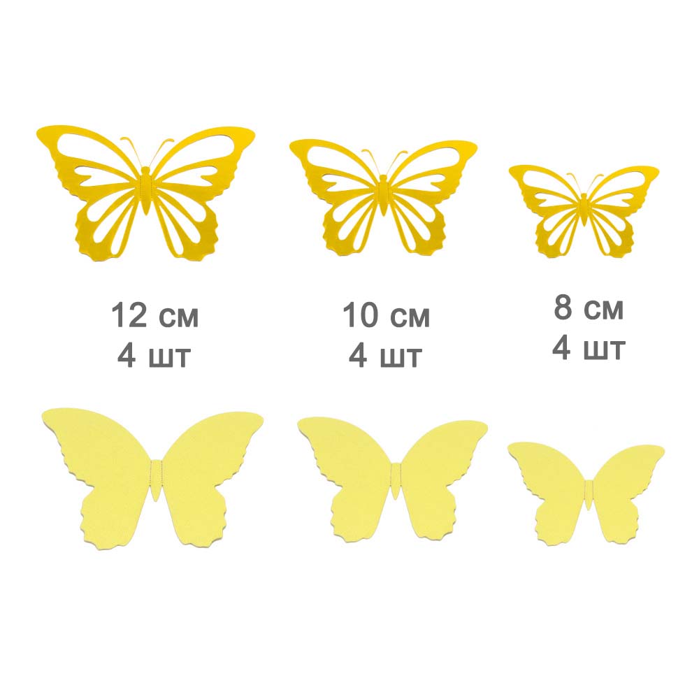 Наклейки Бабочки двойные перламутровые бумажные № 6 12 шт золото+желтый