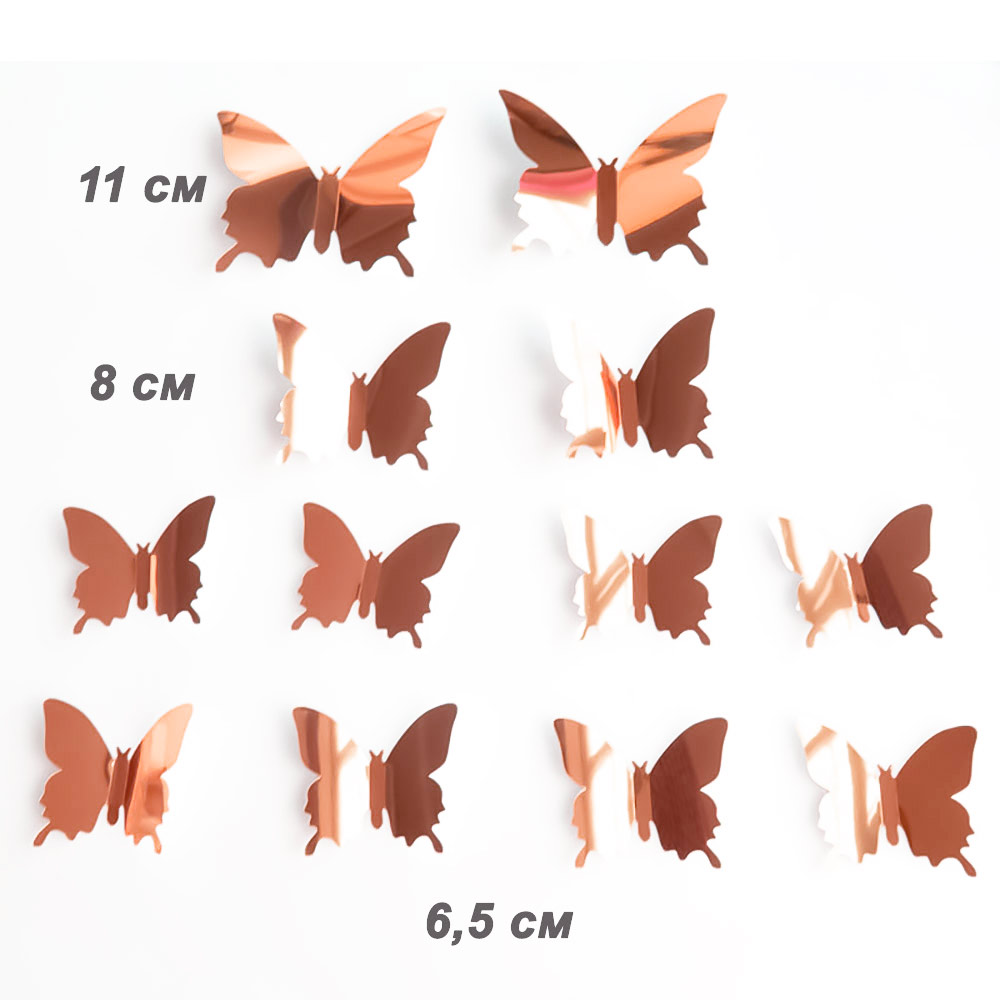 Наклейки Бабочки пластиковые № 9 12 шт металлик серебро+розовое золото