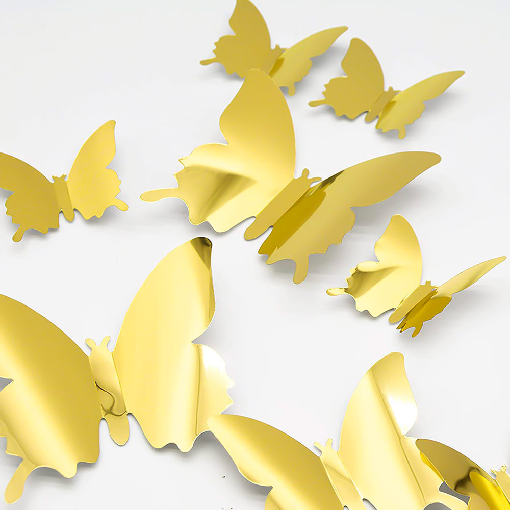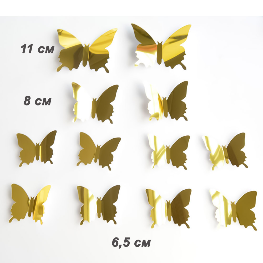 Наклейки Бабочки пластиковые № 9 12 шт металлик серебро+золото