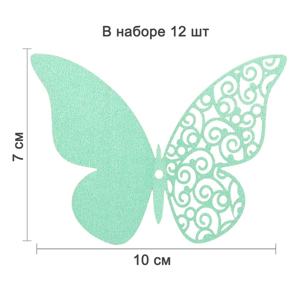 Бабочка из перламутровой бумаги, перфорация исполнена лазерной резкой, крепятся с помощью силиконовой липучки.