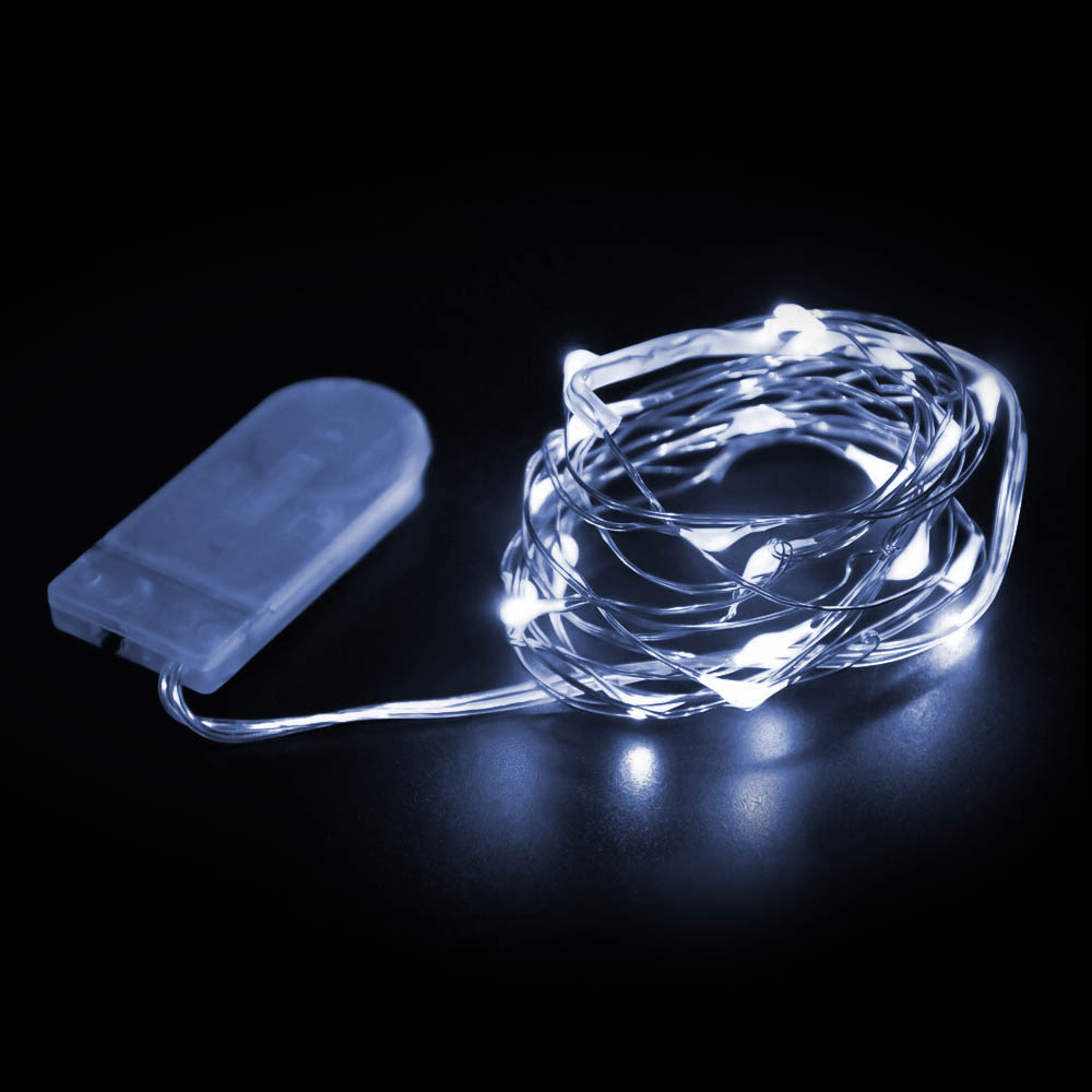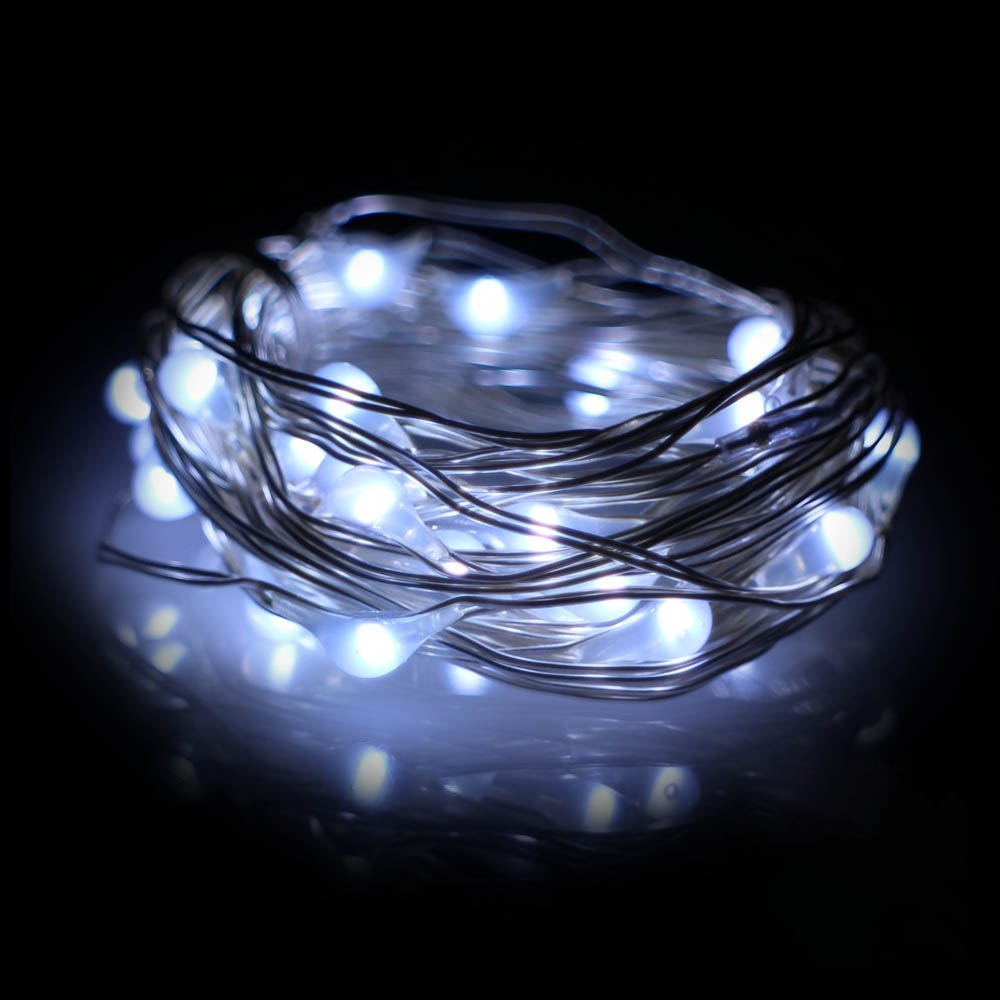 Нить "Роса" серебро, 2 м х 20 диодов, от батареек, белый