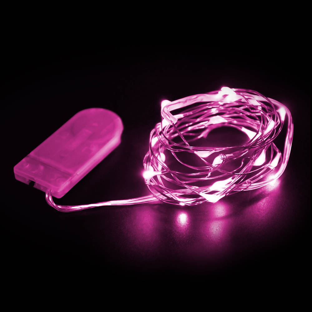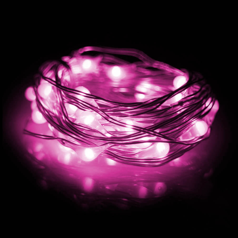 Нить "Роса" серебро, 2 м х 20 диодов, от батареек, розовый