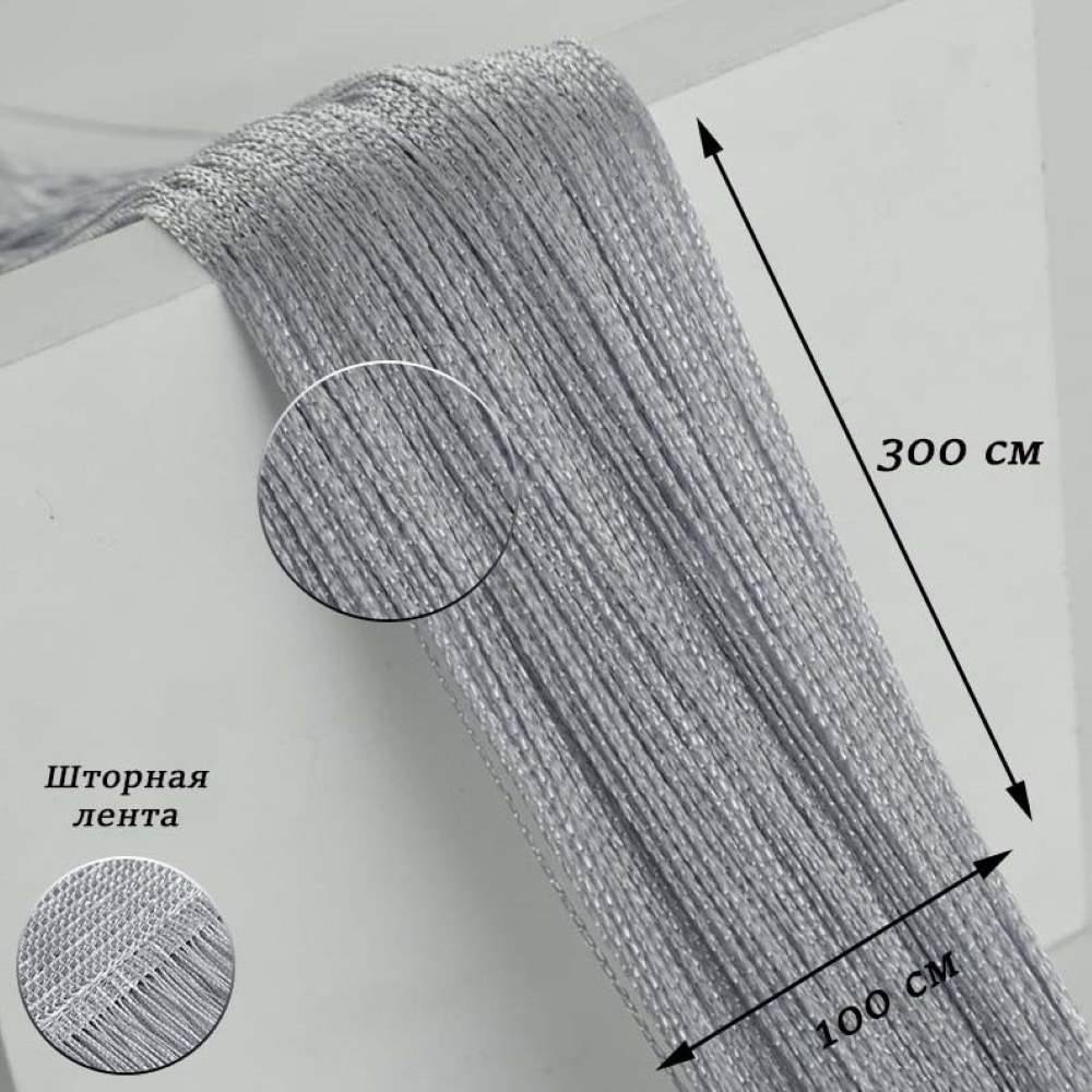 Нитяные шторы-лапша 1х3м, серебристо-серый