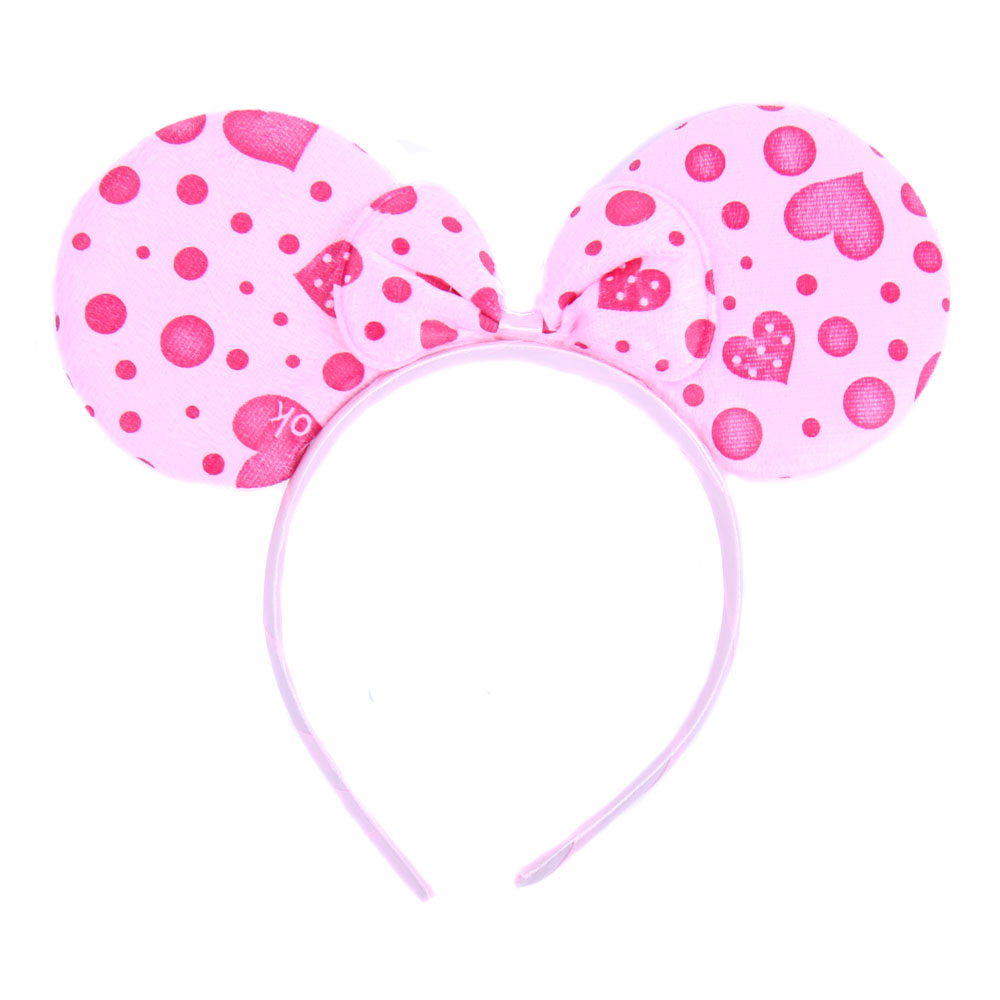 Ободок ушки Минни розовый с малиновыми сердечками