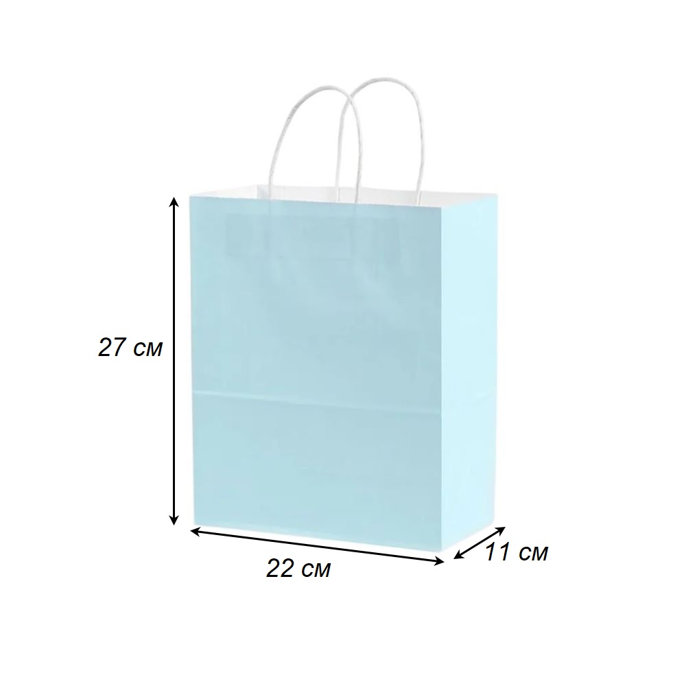 Подарочный пакет из крафтовой бумаги пастельного оттенка с белыми бумажными ручками и белой внутренней стороной.