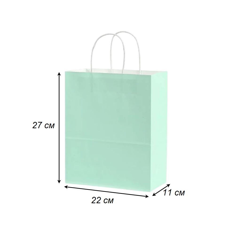 Подарочный пакет из крафтовой бумаги пастельного оттенка с белыми бумажными ручками и белой внутренней стороной.