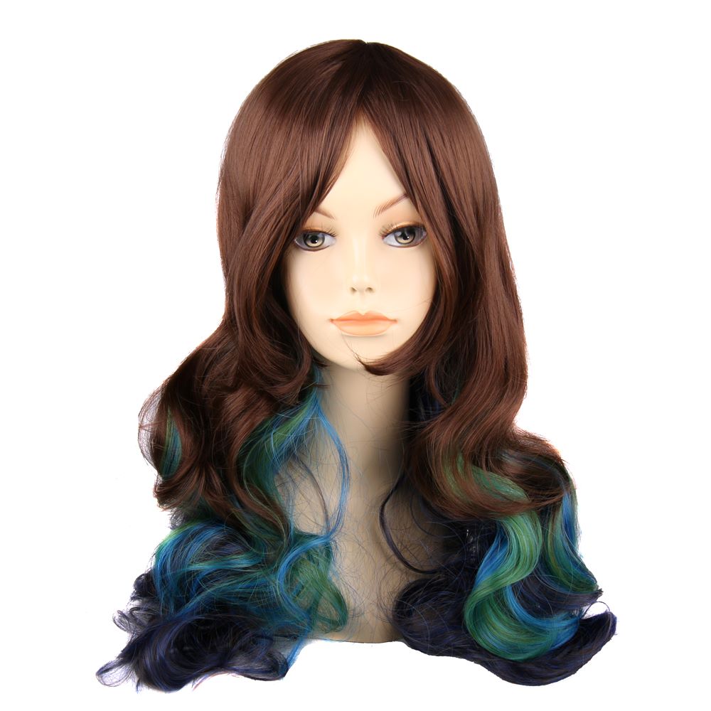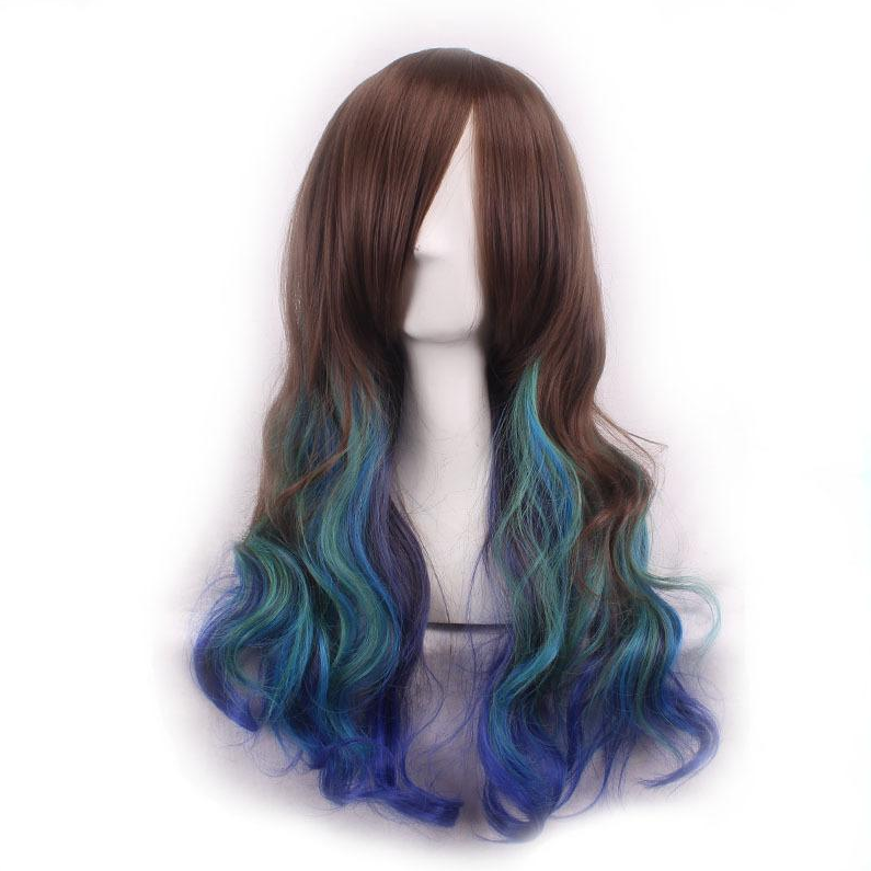 Парик радужный длинный изготовлен из современного искусственного материала.