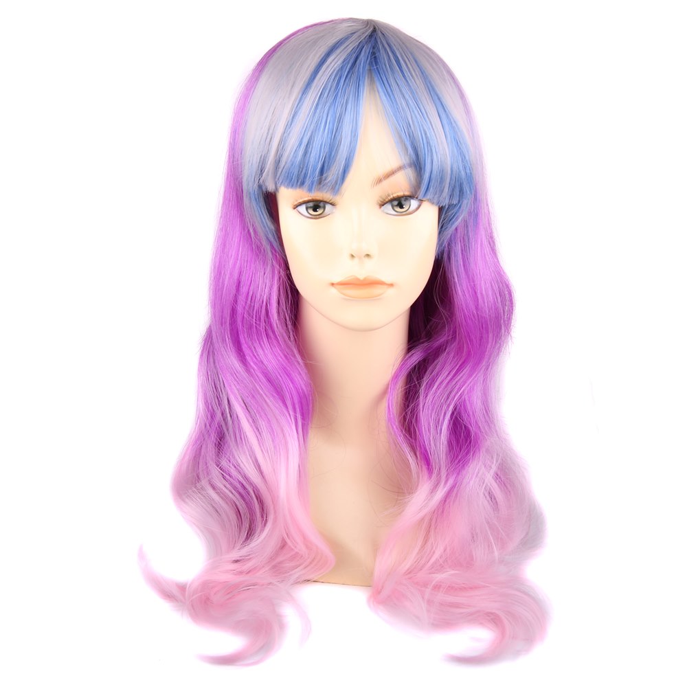 Парик радужный длинный изготовлен из современного искусственного материала.