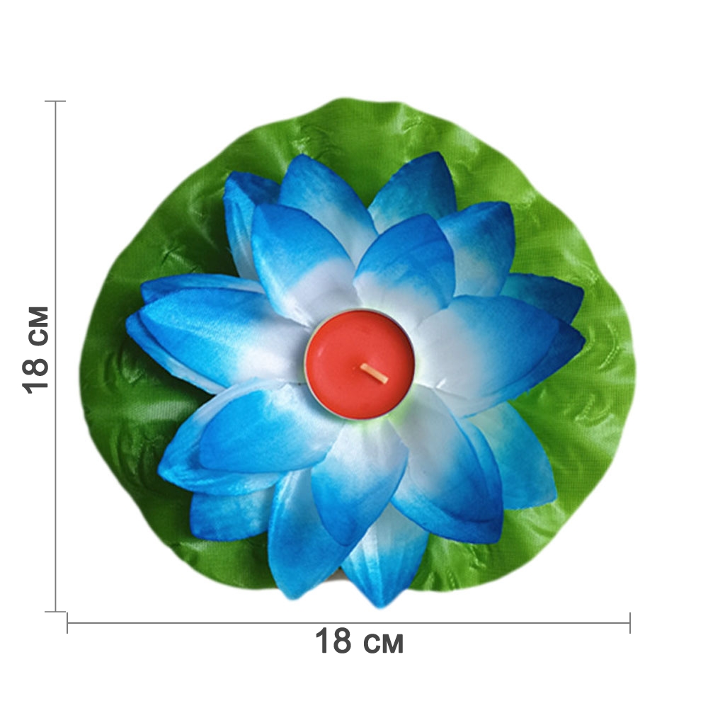 Плавающий фонарик из шелка Лотос 18х18 см синий