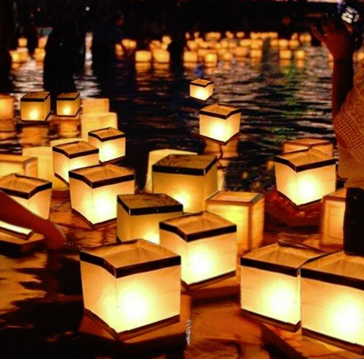 Плавающий фонарик "Куб" 11х11 см золото+белый