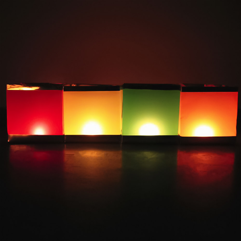 Плавающий фонарик "Куб" 15х15 см золото+красный