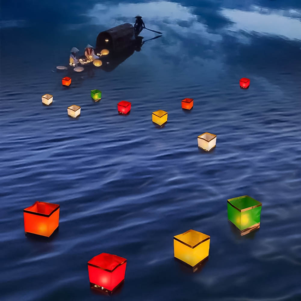 Плавающий фонарик "Куб" 15х15 см золото+зеленый