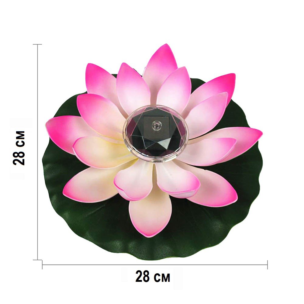 Плавающая Кувшинка с солнечной батареей 28х28 см розовый
