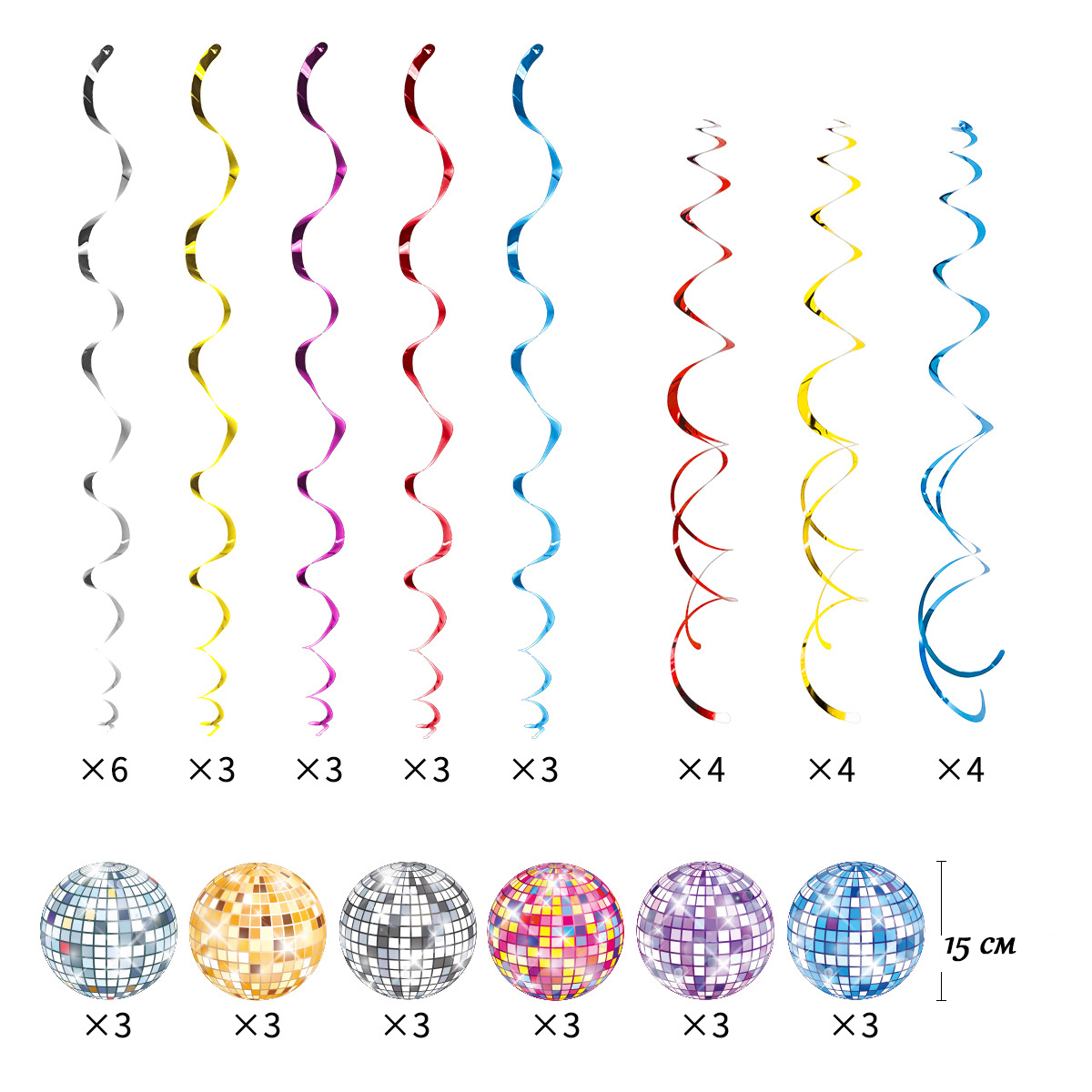 Подвески спираль Диско  могут быть использованы для украшения праздника, фотозоны и других мероприятий.
