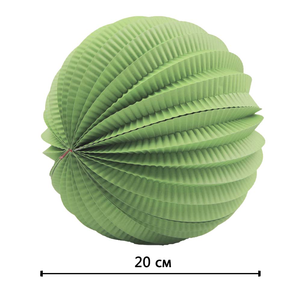 Шар — светло-зеленый, прекрасно сочетается с фонариками других расцветок.