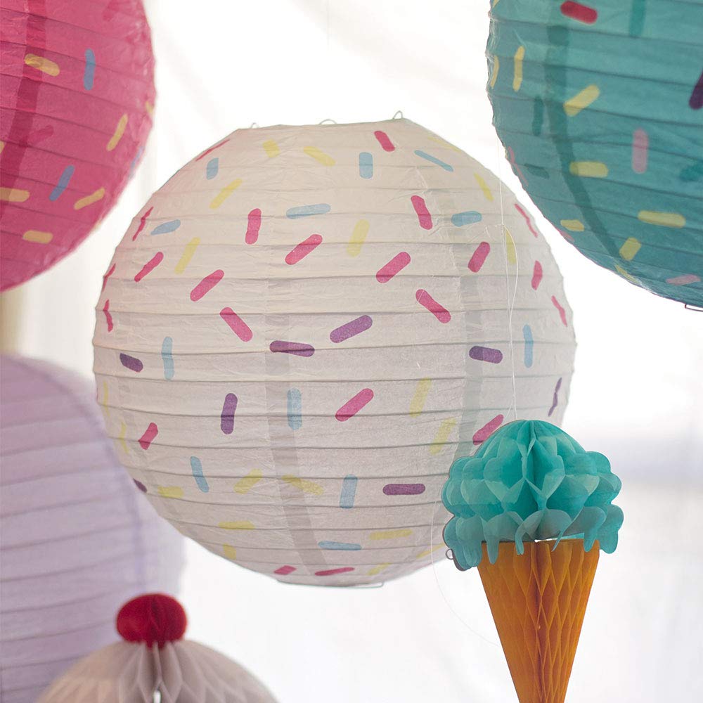 При декорировании создавайте яркие композиции из бумажных фонариков."