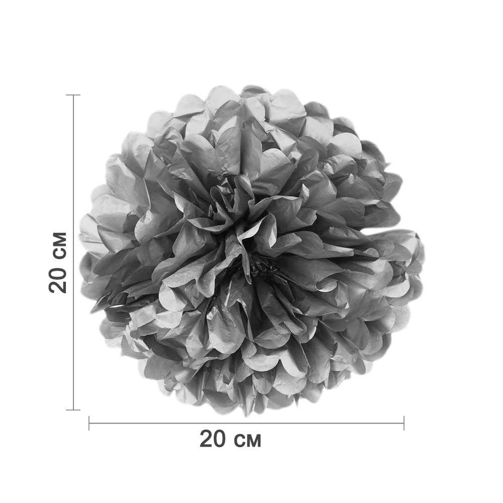 Серебряный бумажный помпон диаметром 20 см — стильное и лёгкое украшение для праздников, фотозон, витрин и интерьера. Отлично подойдёт для дней рождений, свадеб, вечеринок и тематических мероприятий.