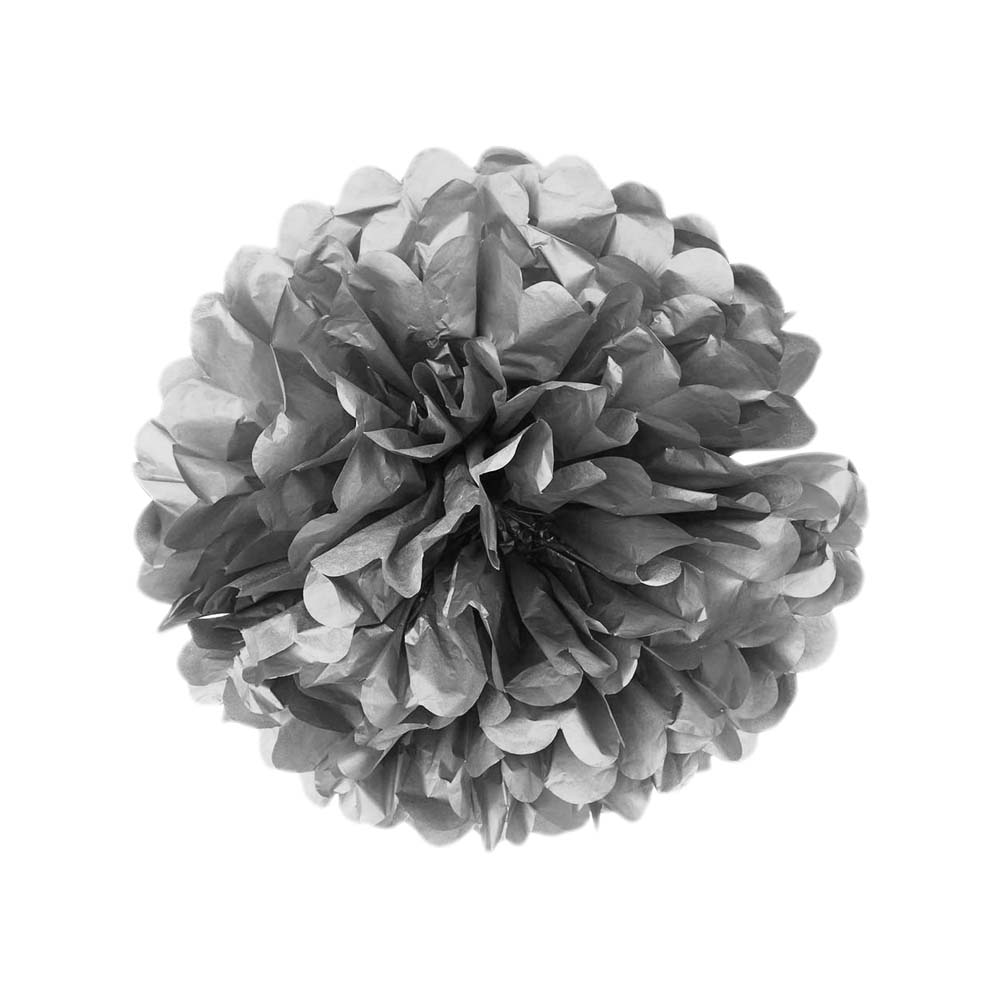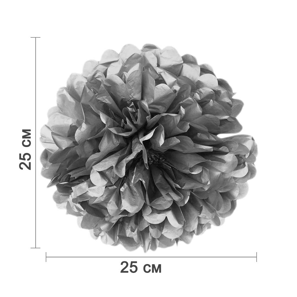 Серебряный бумажный помпон диаметром 25 см — стильное и лёгкое украшение для праздников, фотозон, витрин и интерьера. Отлично подойдёт для дней рождений, свадеб, вечеринок и тематических мероприятий.
