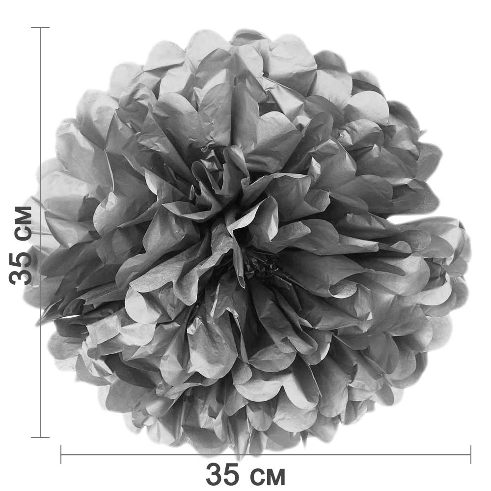 Серебряный бумажный помпон диаметром 35 см — стильное и лёгкое украшение для праздников, фотозон, витрин и интерьера. Отлично подойдёт для дней рождений, свадеб, вечеринок и тематических мероприятий.