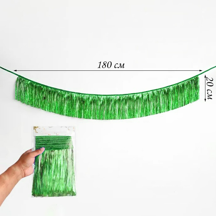 Растяжка бахрома 20см х 1,8м, металлик зеленый