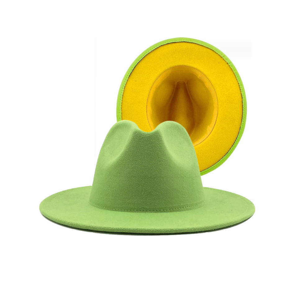 Шляпа Федора фетровая 2 цвета, салатовый+желтый