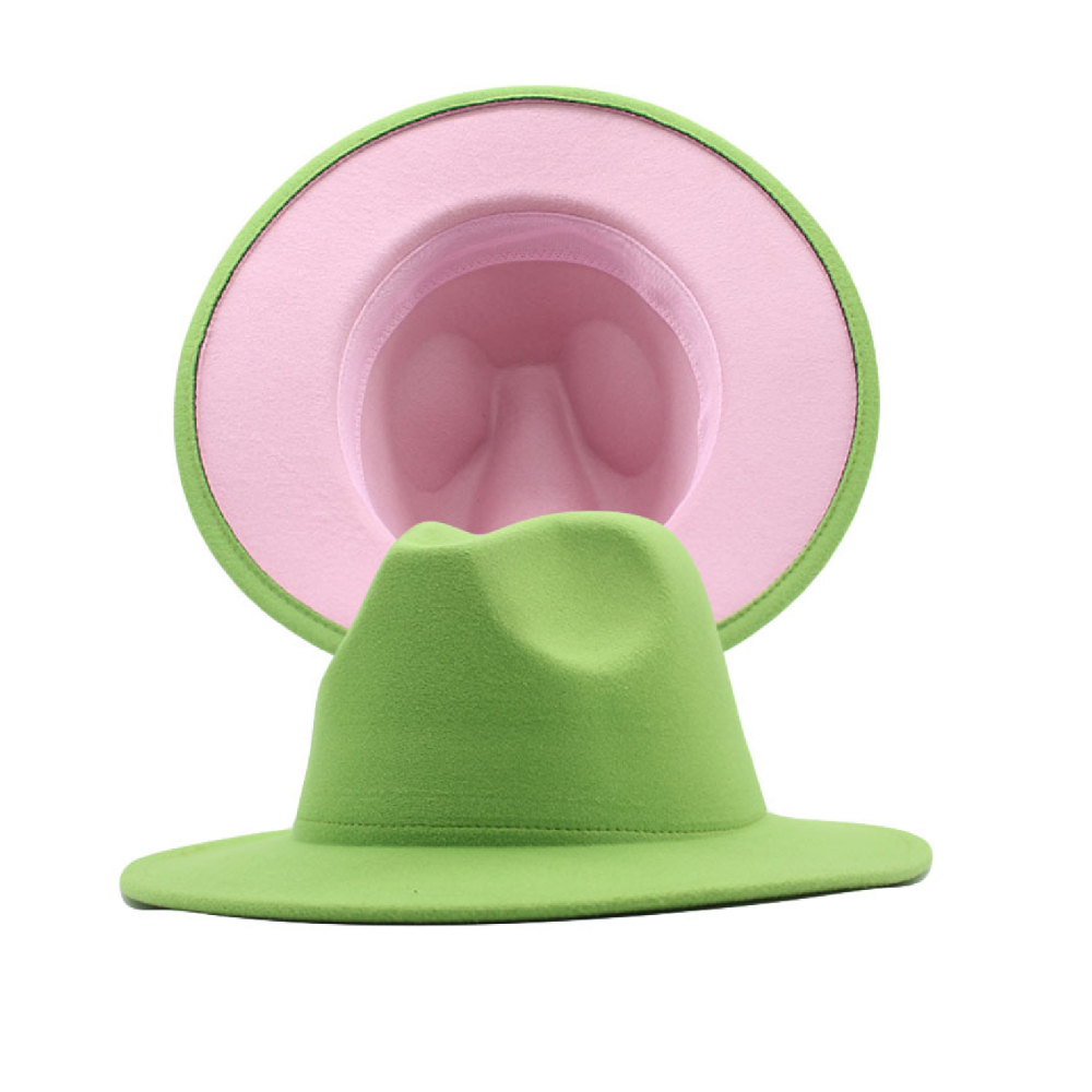 Шляпа Федора фетровая 2 цвета, салатовый+розовый
