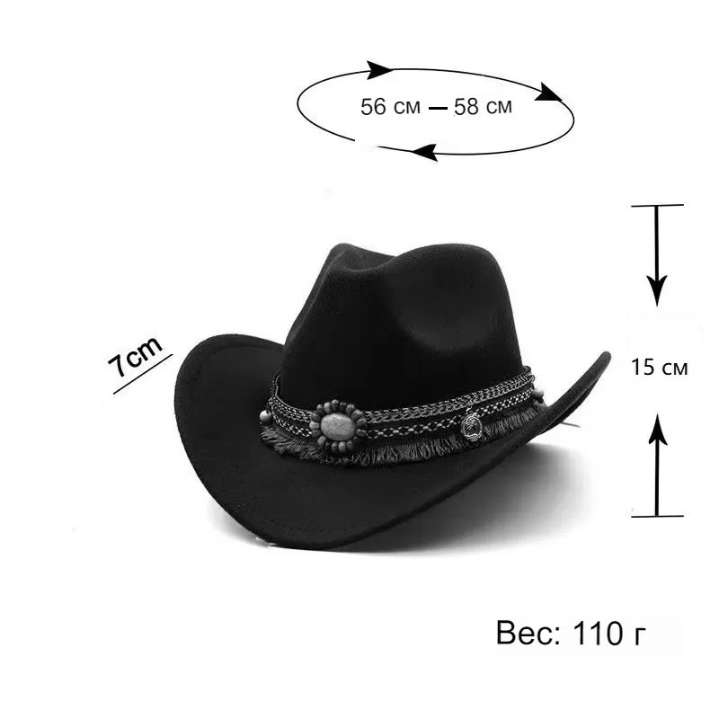 Шляпа ковбойская Бохо из фетра, синий