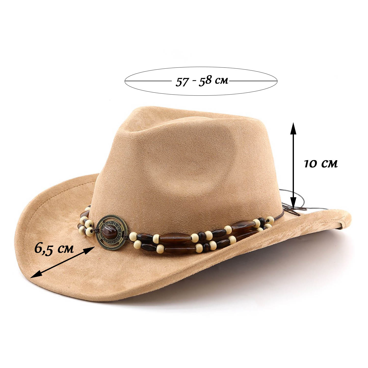 Окружность замшевой ковбойской шляпы: 57-58 см.