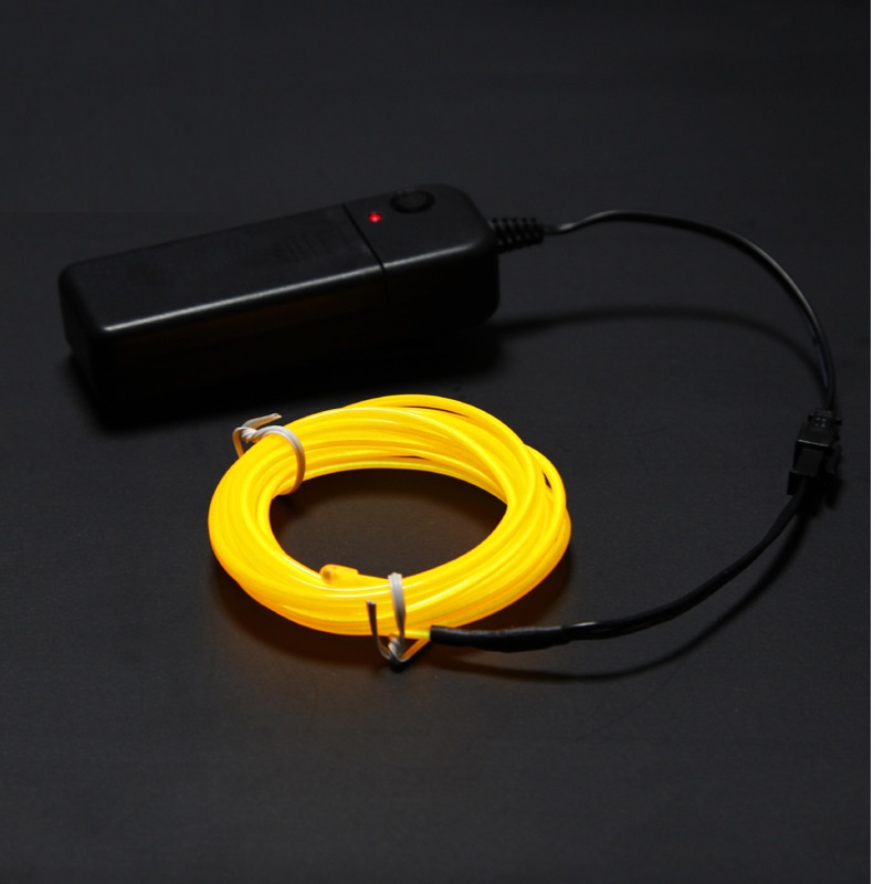 В комплекте с EL проводом, длинной 5 метра,  идет бокс с питанием от батареек, что позволяет его применять где угодно, даже на улице.  Работает от 2-х батареек 2АА (батареек в комплекте нет).