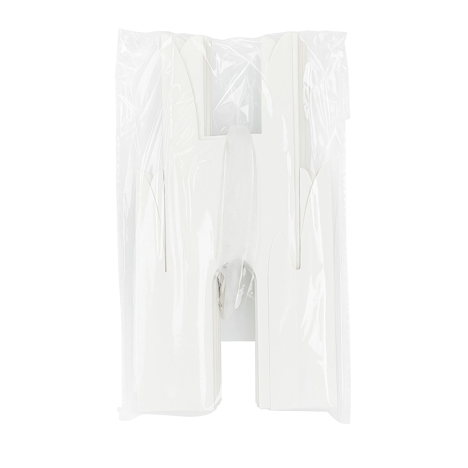 Верхние концы конструкции соединяются встроенными магнитами — снежинка легко складывается и фиксируется без клея и лишних креплений. Для подвешивания предусмотрена тонкая ленточка из органзы, благодаря которой украшение удобно разместить на окне, потолке или новогодней ёлке.