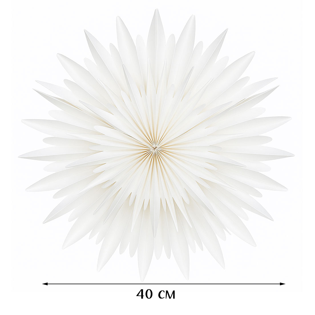Элегантная объёмная снежинка из плотной бумаги станет стильным украшением зимнего интерьера. Нежный белый цвет придаёт оформлению лёгкость и ощущение снежной свежести, а ажурный узор делает декор утончённым и нарядным.