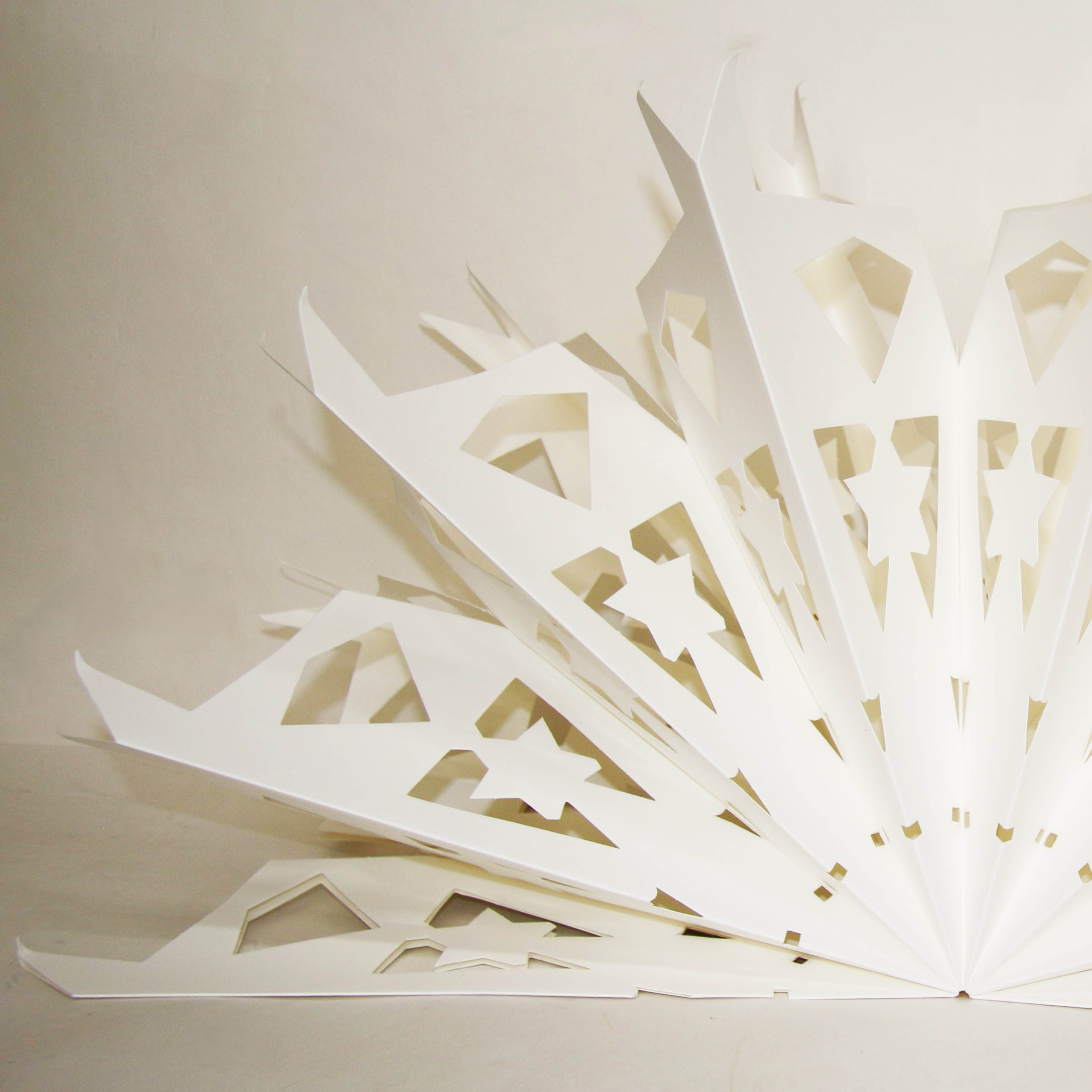 Снежинка на липучках размером 60 см, белого цвета, изготовлена из высококачественной бумаги.