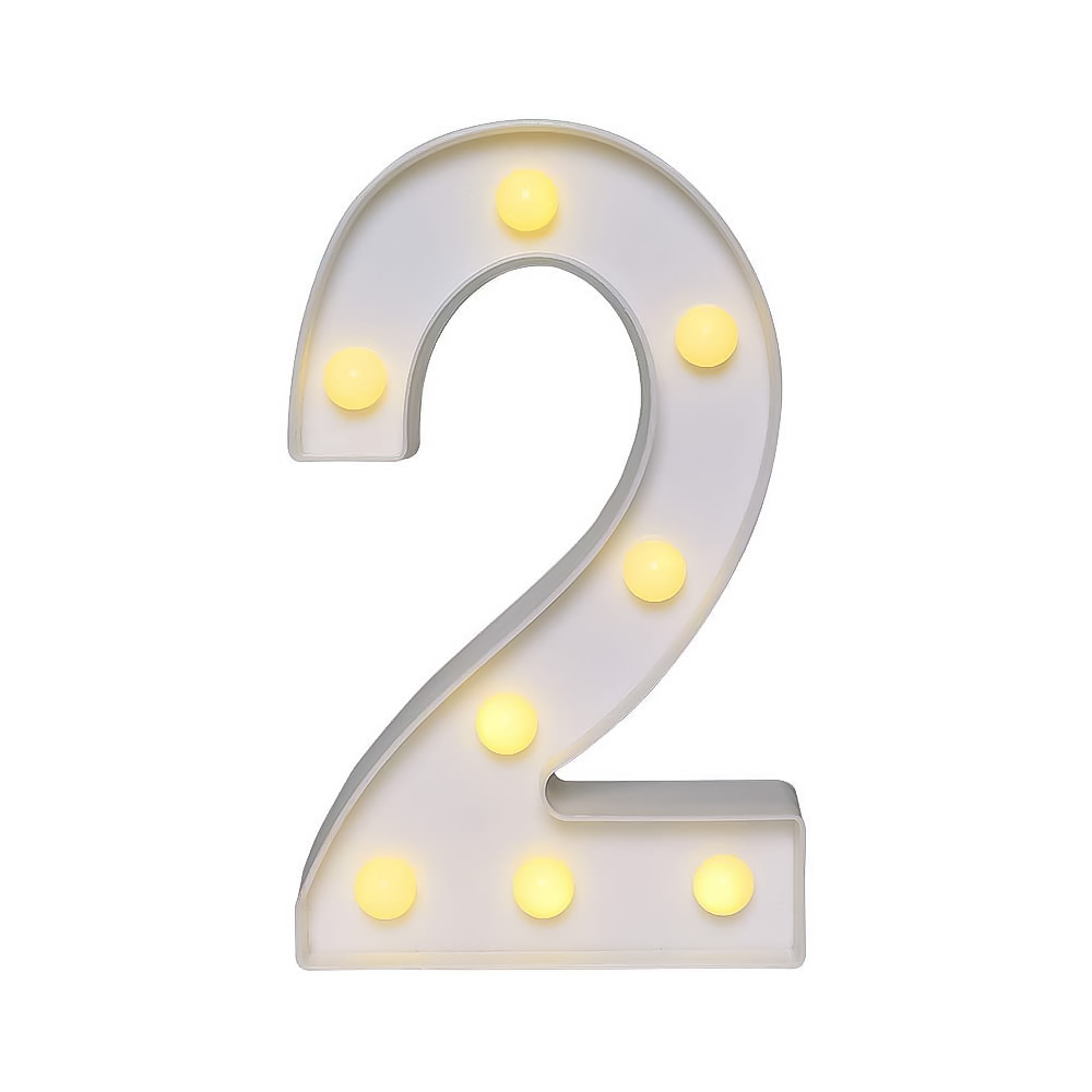 Цифра 2 светодиодная 21 см, от батареек , теплый белый
